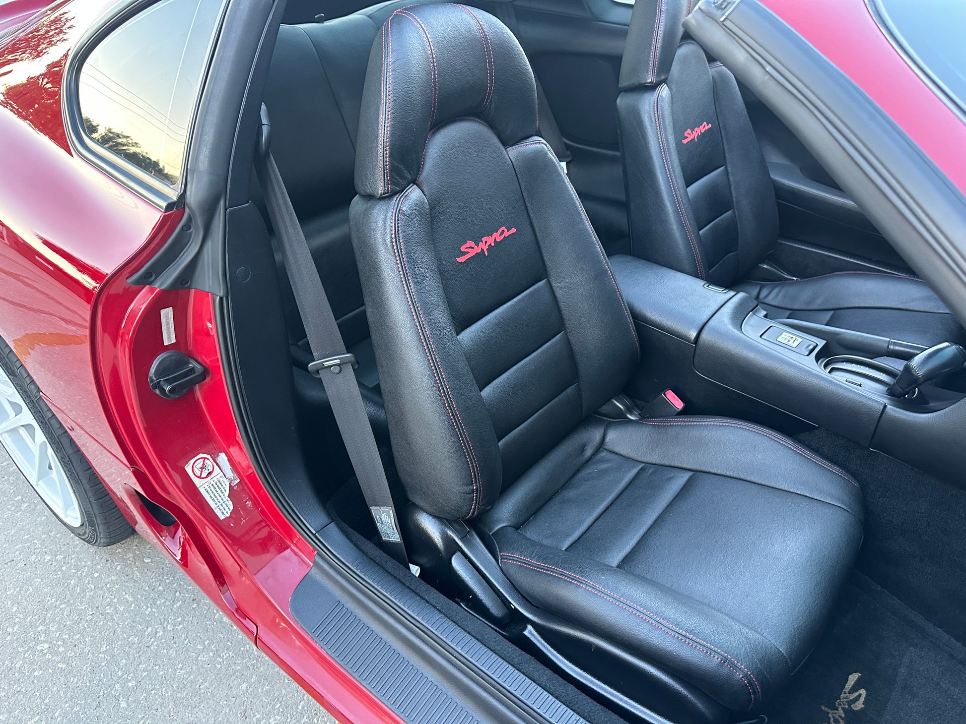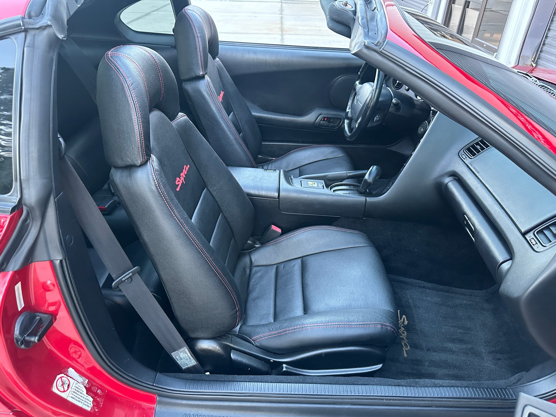 Comments: This Supra runs drives and shifts great. Mechanically some major maintenance has been completed like new water pump and timing belt along with the cam and crank seals by us. Engine is completely stock with original twin turbos. Exterior has been repainted at some point and does have minor cosmetic dings. Interioris all original down to the radio with reupholstered black leather seats. All electronics, gauges, windows are still in working order! Great looking Supra that’s ready for the new owner to enjoy!